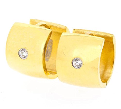 Ben and Jonah Stainless Steel Gold Plated Wide Huggie Earring with One Stone