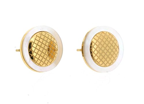 Ben and Jonah Stainless Steel and Gold Plated Stud Earring with Mother of Pearl Border and Inner Honeycomb Design