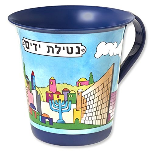 Ultimate Judaica Watercolor Jerusalem Scene Metal Wash Cup (Netilat Yadayim) - 5.5 inch H