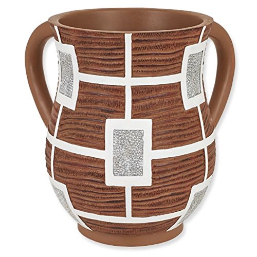 Ultimate Judaica Contemporary Design Brown with Silver Sparkle Resin Wash Cup (Netilat Yadayim) - 6.25 inch H