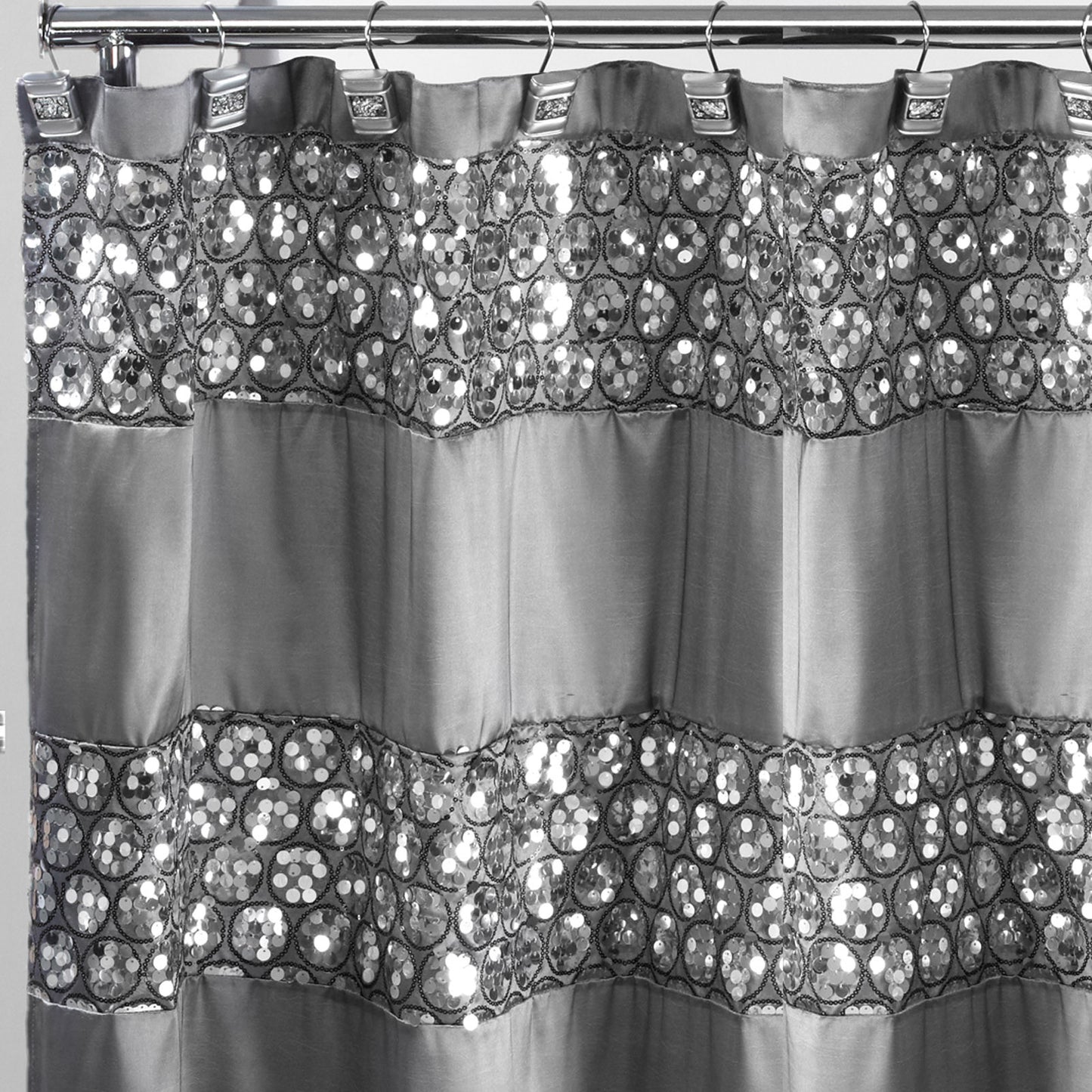 Add a touch of class to your bathroom with this Bedazzled Bling Shower Curtain. Measures 70" x 72". Made of 100% Polyester, machine washable. Add glamour to your bathroom with the elegant Bedazzled Bling style! Measures: 70" x 72" 100% Polyester Machine washable Does not include Hooks