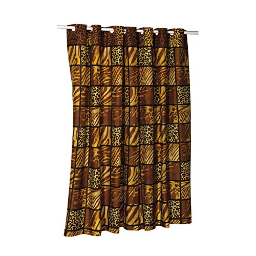 High Quality inch Ez On inch Fabric shower curtain with built in shower curtain hooks: size 70 inch wide x 72 inch long; pattern name inch Wild Encounter inch ; color brown