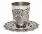 Enhance your Sabbath and Holidays with this decorative and elegant Nickel Plated Kiddush cup with plate.