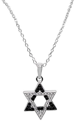 - Silver Star Of David Necklace With Black/Silver Stones - Chain 18 inch Pendant 1/2 inch H X 1/2 inch W