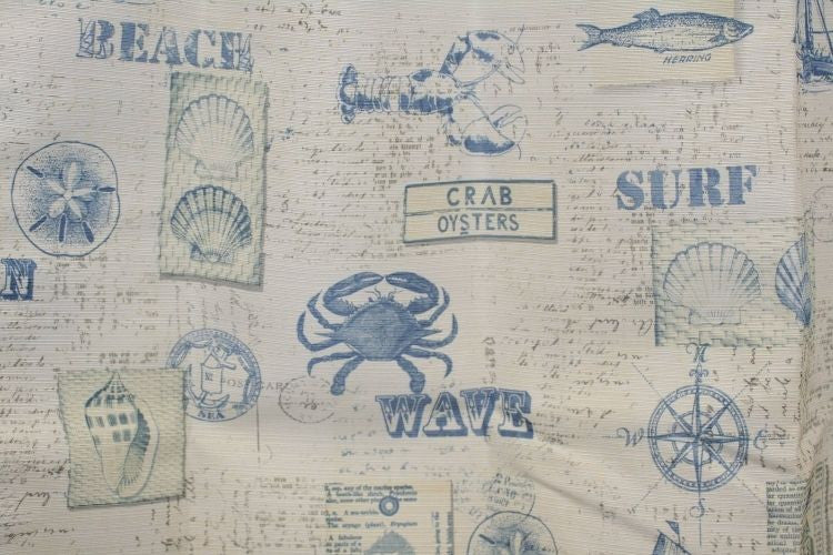 | Turn your bathtub into the sea with this stylish textured fabric shower curtain! | Measures 70" x 72" | 100% Polyester | Machine Washable | No hooks included, use of waterproof liner recommended | ||