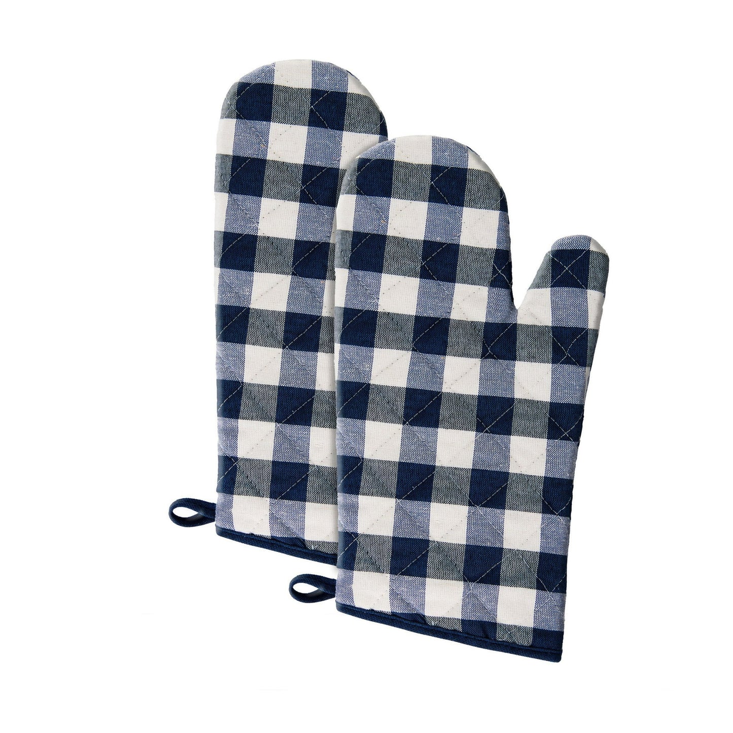 Traditional Elegance Buffalo Check Oven Mitt - Navy - 7-in x 13-in - Set of Two